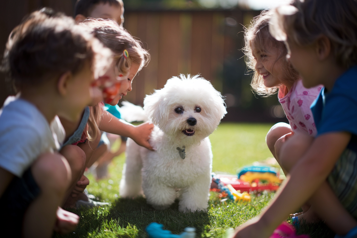 מחקרים מצביעים על כך שבמשפחות עם ילדים ואנימל חבר כחיית מחמד – ובמיוחד כלב אינטראקטיבי כמו הבישון – קיימת ירידה של עד 30% בתסמינים התנהגותיים של תקופת הילדות המוקדמת כמו חרדה, התבודדות או מתחים בין אחים.