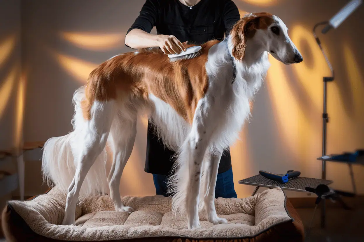 פרוות הבורזוי לא דומה לשום גזע אחר שהכרתי. היא חלקה ומתנפנפת כמו מעיל משי של נסיך רוסי, אבל דורשת סירוק יסודי 3-4 פעמים בשבוע למניעת הסתבכויות וקשרים. במיוחד אחרי טיולים בשטח פתוח, כל מגע עם שיחים או קוצים הופך למפגש נוסף עם מברשת – זה ממש דומה לעבודת נמלים.